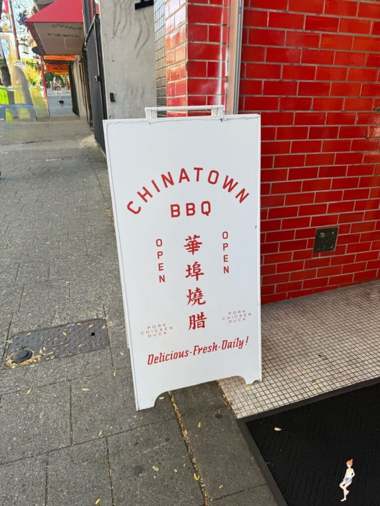 後來再慢慢地走原路回到chinatown,先看到一個大大的中國風門牌,chinatown裡面有賣許多華人的商品,像是衣服、乾貨、美食等等,太早去其實很多店都還沒開,像是我在網路上有查到一間有名的「華埠燒臘」就要11點才開。